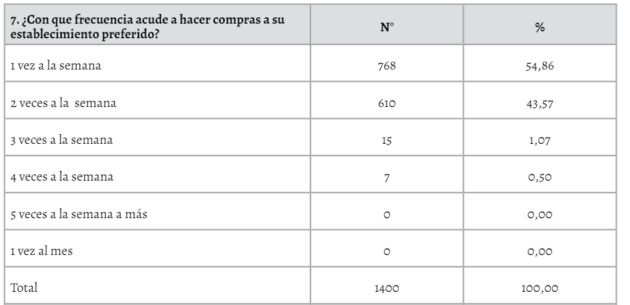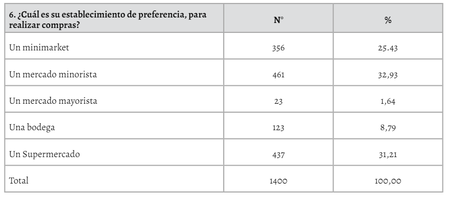En la tabla 4, se muestran los resultados referentes a la dimensión de estilos de consumo, podemos mencionar que la mayor parte de los encuestados acuden a un mercado minorista y supermercados a realizar sus compras. Estos datos son bastante distantes a los estilos de compra en España donde 51% acuden a supermercados (Carlos et al., 2012), y nos muestran el comportamiento de los consumidores en relación a sus preferencias de compras (Negussie & Mustefa, 2016).