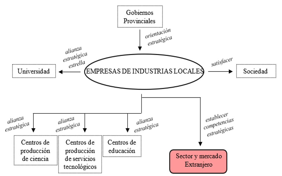 El estudio se realizó en enero de 2021 donde se identifica el flujo de alianza y compromiso de las Empresas de Industrias Locales para su creación de valor. Se selecciona a los gobiernos provinciales, universidades, centros de producción de ciencia, centros de producción de servicios tecnológicos y centros de enseñanzas para la creación de valor que satisfaga la producción a la sociedad desde las Empresas de Industrias Locales.
